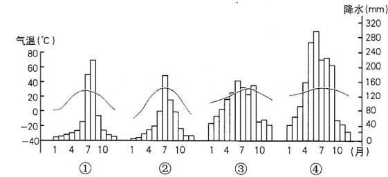 D.①地年降水量最少,气温的年较差最大