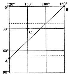 4、单选题 下图为经纬网图。图中A点位于南纬68度,AB为晨昏线的一段;此刻,北京处于白昼;近期,C地日出时刻越来越早。据题设条件回答1—2题。
