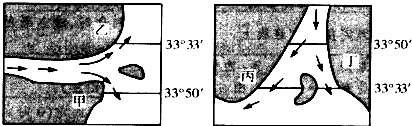 ? ①甲岸 ②乙岸 ③丙岸 ④丁岸
