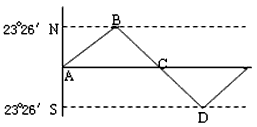 1、单选题 读“太阳直射点回归变化示意图”,回答1—2题。