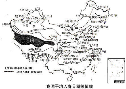 (1)依图概述我国东部季风区各地入春日期的总体分特点。