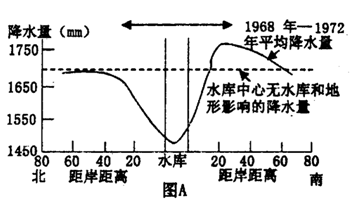 材料一:浙江西部山区某水库对降水量的影响图。(图A)