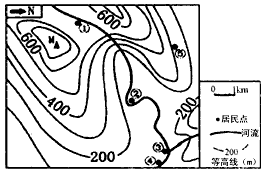 D、由⑤居民点取近道攀登M山忽上忽下较耗体力
