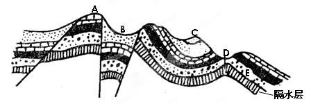 (3)图示反映A处岩层较两边高,故说明A处为岩层上升。利用背斜储油,向斜储水的原理判断。