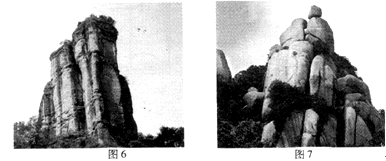 5、单选题 武夷山属典型的丹霞地貌,是地质时期沉积的巨厚的红色岩层,经地壳运动和外力作用形成的一片红色群山。太姥山属典型的花岗岩地貌,是地质时期由岩浆上升冷凝而成的花岗岩,经地壳运动和外力作用而形成,花岗岩球状形态是其典型的地貌特征。图6为武夷山丹霞地貌景观图,图7为太姥山花岗岩地貌景观图。读图完成10-一12题。