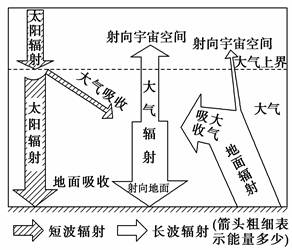 本题解析:近地面大气的热量主要来自地面辐射,地面辐射是近地面大气的直接热源。