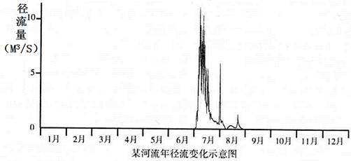 3、单选题 读“某河流年径流变化示意图”,完成下列问题。