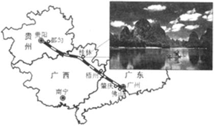 4、单选题 2014年12月26日,贵广高铁正式运营,沿途美景吸引游客前往。读下图回答以下问题。