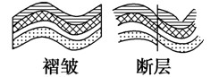 (3)背斜顶部因受张力,岩石破碎,容易受侵蚀而成谷地。