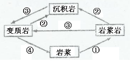 2、单选题 读岩石圈物质循环示意图(如图)图中序号代表的地质作用正确的是