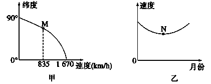 4、单选题  读“地球自转线速度随纬度变化图”(甲)和“地球公转速度变化图”(乙),回答下列各题。