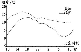 2、单选题  下图为成都和拉萨某时段气温变化曲线图。读图完成小题。