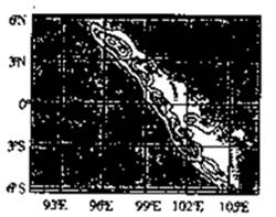 5、单选题 格林尼治时间2014年10月25日14点42分,苏门答腊岛附近发生7.2级强震,震中位于南纬3.61度,东经99.93度,震源深度为10公里.地震引发海啸,百余人死亡,数百人失踪……,读下图完成下列各题。