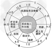 5、单选题 下图为北半球某农场的工作历程(农事安排)示意图,读图完成1-2题。