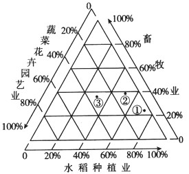 2、单选题 下图为“我国某县农业产值构成图”,①②③分别代表1979年、1994年和2009年的农业产值。读图回答1~2题。