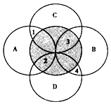 1、单选题 下图各圆中,A和B,C和D是并列关系,阴影圆和其他圆是交叉关系,完成1—2题。
