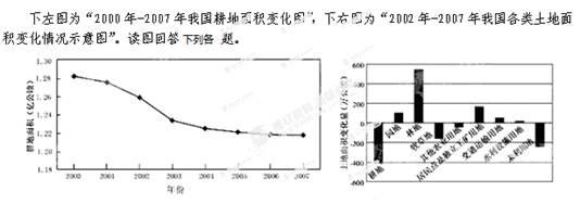 小题2:2002年-2007年我国耕地面积减少的原因有