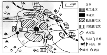 2.关于该城市功能区形成因素的叙述,正确的是