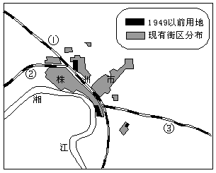 (2)株洲城市在1949年以前规模较________;城市主要沿__________分布。