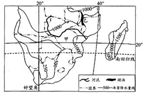 小题2:图示甲位于南非高原,为热带草原气候分布。