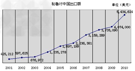 材料一:2001-2010年秘鲁对中国出口额变化统计k