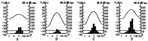 1、下图中的气候资料,与上图中R城市气候相符的是