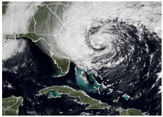 4、单选题 北京时间2012年10月30日6点45分,飓风“桑迪”在新泽西州登陆,截至11月4日上午,飓风桑迪已导致美国113人死亡,联合国总部受损。图为飓风“桑迪”某时刻的影像图。据材料和图回答下列问题。