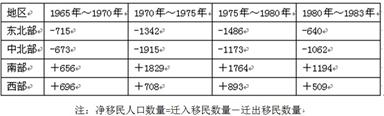4、综合题 美国1965年—1983年间不同地区的净移民人口数量表(单位:千人),完成问题。