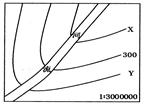 【小题1】根据河流分布,则判断该处地形为山谷,故等高线应符合“凸高为低”,故X的数值应低于300米。