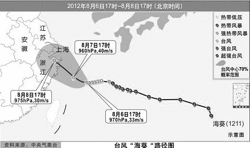 3、单选题 今年第11号强台风“海葵”的中心于8日3时20分前后在浙江省象山县鹤浦镇沿海登陆,8日白天穿过浙江省,8日夜间进入安徽省,给长江三角地区带来了持续强风雨并引发风、水灾害,据下图回答题。