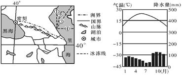 3、单选题 读“索契区域示意图”和“索契气候资料图”,回答下列各题。
