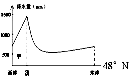 3、单选题 下图为某大陆北纬48°沿线地区的年降水量变化示意图,据此回答下列各题。