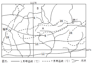 2、单选题 下图为“我国某区域1月和7月等温线分布图”。读图,回答下列各题。