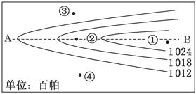 小题1:图中四地,最可能为阴雨天气的是
