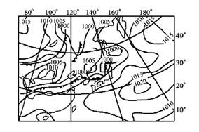 5、单选题 读某日某时海平面天气图,图中,此时可能出现降水天气的地区是
