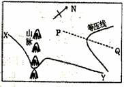 4、单选题 图中xY线为地球自转线速度等值线,PQ为锋线,完成下列问题。