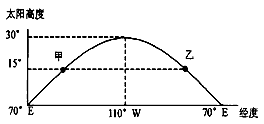 4、单选题 下图表示某日北半球某纬线上不同经度的太阳高度分布规律。读图回答(1)——(3)题。