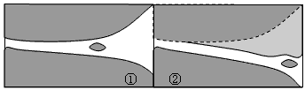 5、单选题 下图中,①图发展成②图,如果只考虑地转偏向力的影响,则此河位于