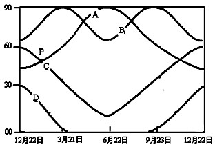 3、单选题 下图中ABCD分别表示不同地区正午太阳高度随四季的变化图,读图回答1~3题。
