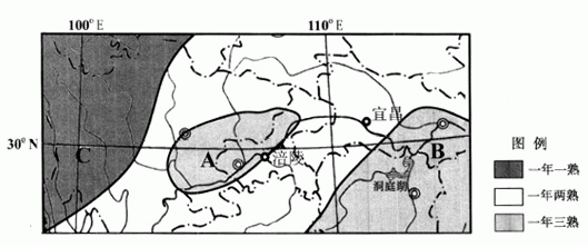 3、综合题 农作物熟制:是指一定时间内,作物正常生长收获的次数:如一年内,作物正常生长,只收获一次的,叫一年一熟制,依此类推。下图为我国局部地区农作物熟制分布图。结合图文资料,回答下列问题。