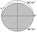 5、综合题 该图中阴影部分为黑夜,此时北京时间为9时,读图完成下列各题。(10分)