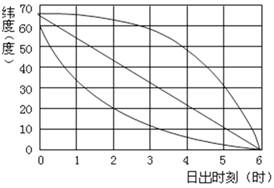 4、单选题 下图是某日同一经线日出时刻(地方时)随纬度变化图。图内三条曲线,其中一条是正确的。请阅读正确曲线,回答下列问题。
