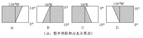 小题2:若上图表示南半球的状况,当北京时间12点时,下列四图与之相符的是