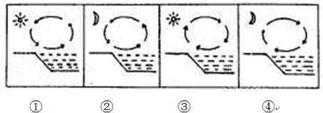 2、单选题 读所给四幅海陆风示意图,判断近地面大气运动的正确流向是?