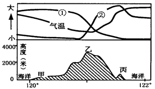 1、单选题 该图下部为某岛屿沿回归线的地形剖面图,上部是该区相关地理事物沿线变化图,回答1~2题: