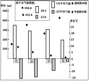 【小题2】在四个城市中④的1月平均气温最高,原因是
