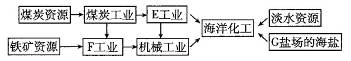 (2)海洋化工是该区重点发展的工业部门。图中反映了海洋化工与其他工业部门之间的联系,请将该图字母所代表的工业部门及所需的资源补充完整。