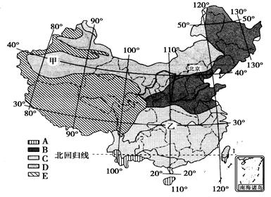 本题解析:(1)本题考查我国的主要气候类型分布。其中青藏高原的气候形成是地形因素为主。(2)秦岭—淮河一线是我国重要的地理分界线。(3)甲是塔里木盆地,有丰富的油气资源。乙是长江三峡,丰富的水能资源。
