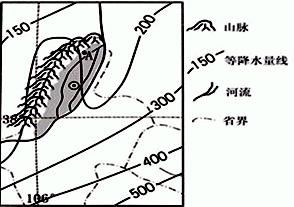 参考答案:⑴东部等降水量线大致与海岸线平行,说明受海陆因素影响;西部等降水量线在山地向北弯曲,说明受地形影响。(4分)