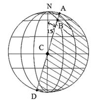 3、综合题 读图“太阳光照图”(图中阴影部分为夜半球,非阴影部分为昼半球),图示时刻北京时间为7月某日11时20分。读图回答下列问题:(24分)